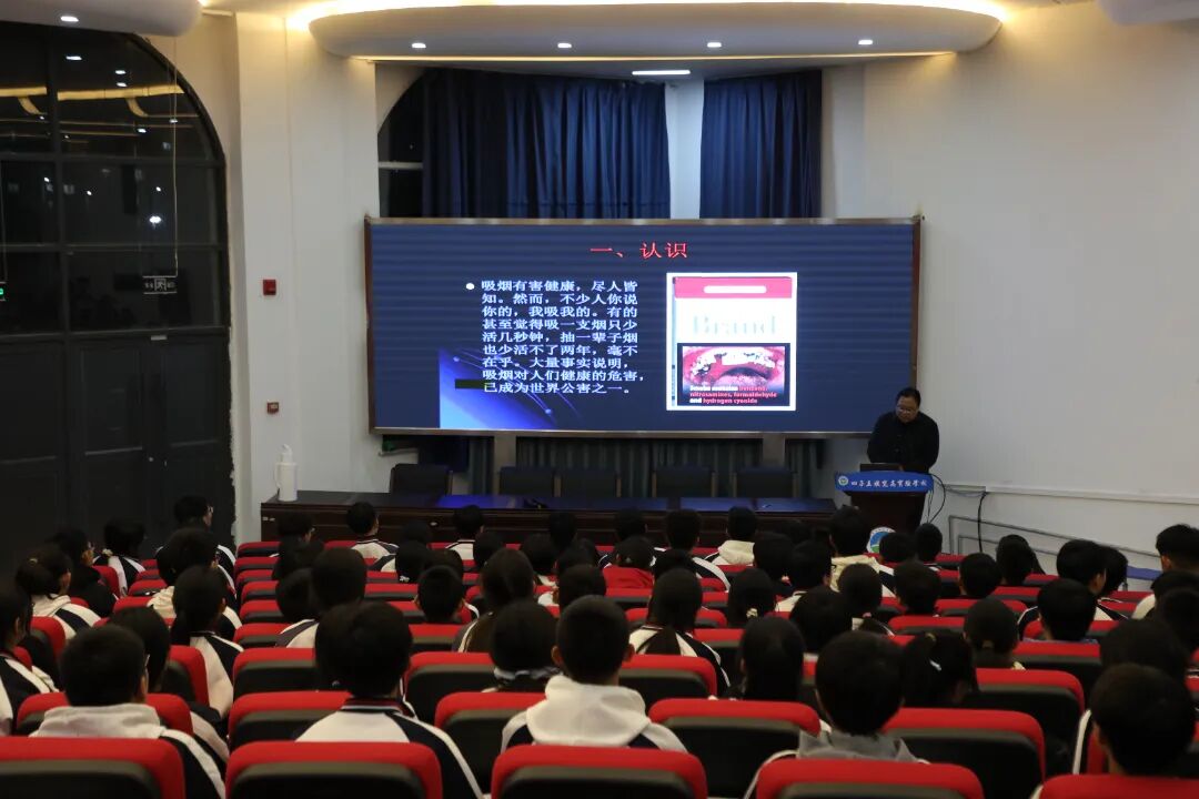 为筑牢校园德育防线,引导学生规范言行,孙校长还详细宣读了学校 “十大德育红线” 及违反规定的处理办法,明确了行为准则与纪律底线,要求全体同学严格遵守,若有违反,学校将依规严肃处理,绝不姑息。最后,孙校长以 “别污染了自己的青春” 为警示主题,通过真实图片与具体事例,深刻揭露了毒品与吸烟对身心健康、青春未来的严重危害,郑重号召同学们远离毒品、拒绝吸烟,要求有吸烟习惯的同学立即戒烟,守护好自己的青春与健康。